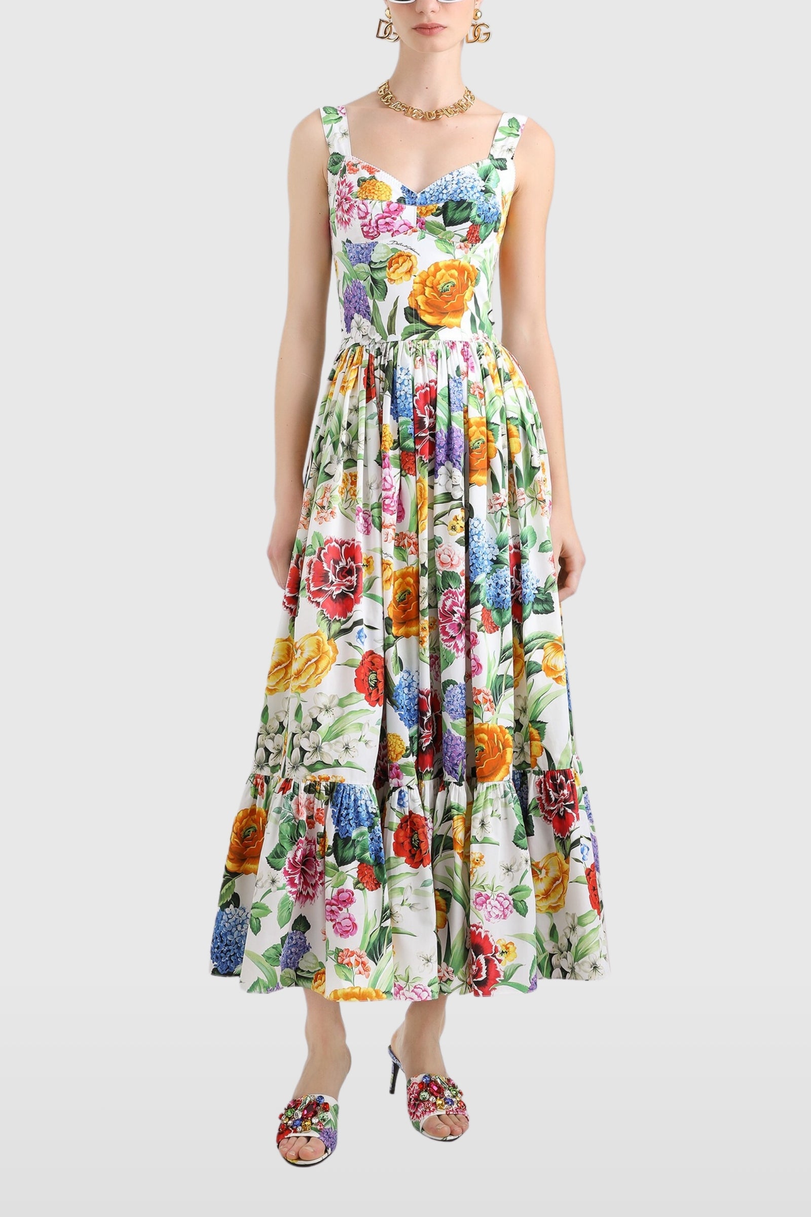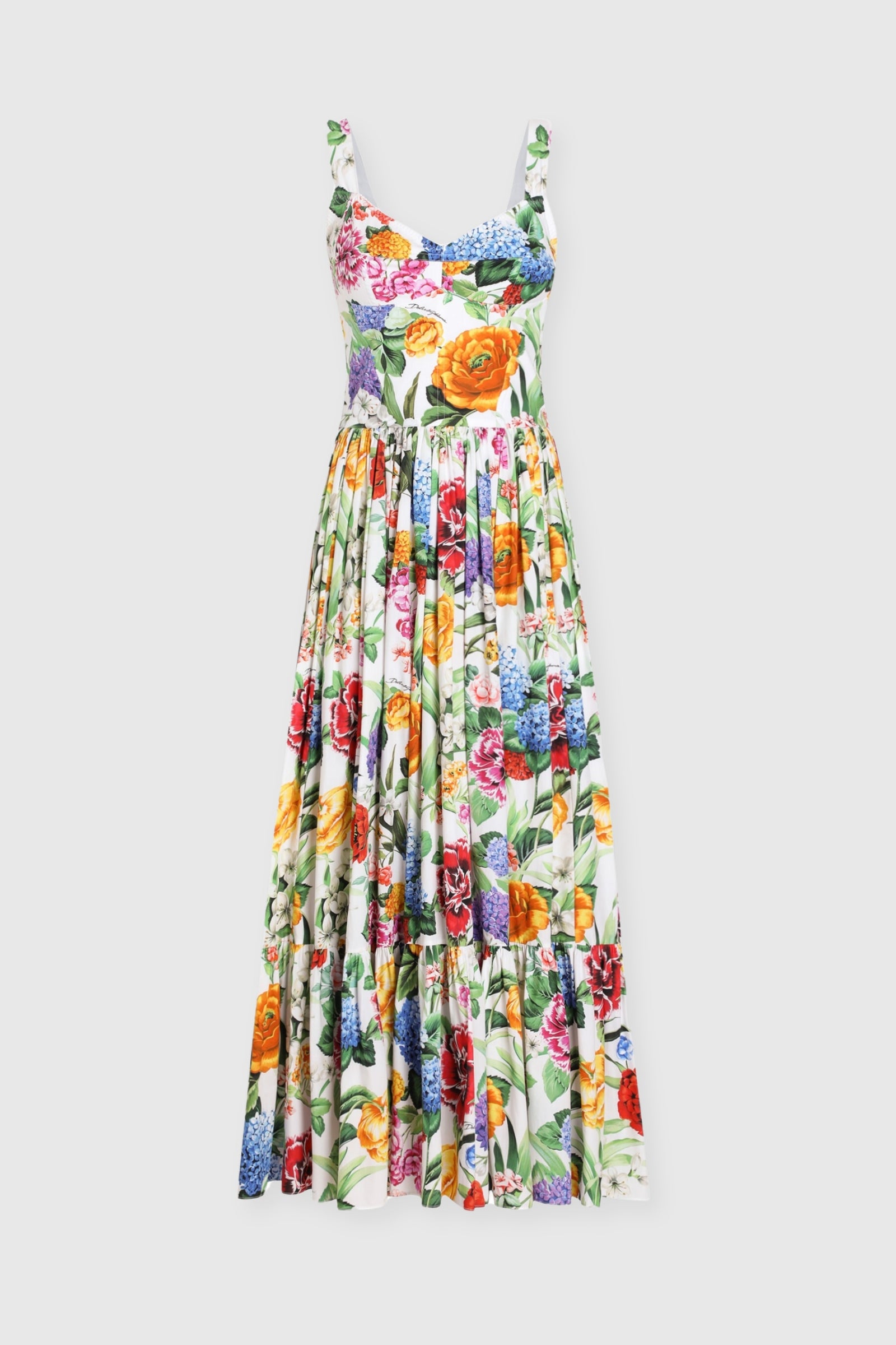Dolce & Gabbana Floral Bustier Cotton Poplin Dress
