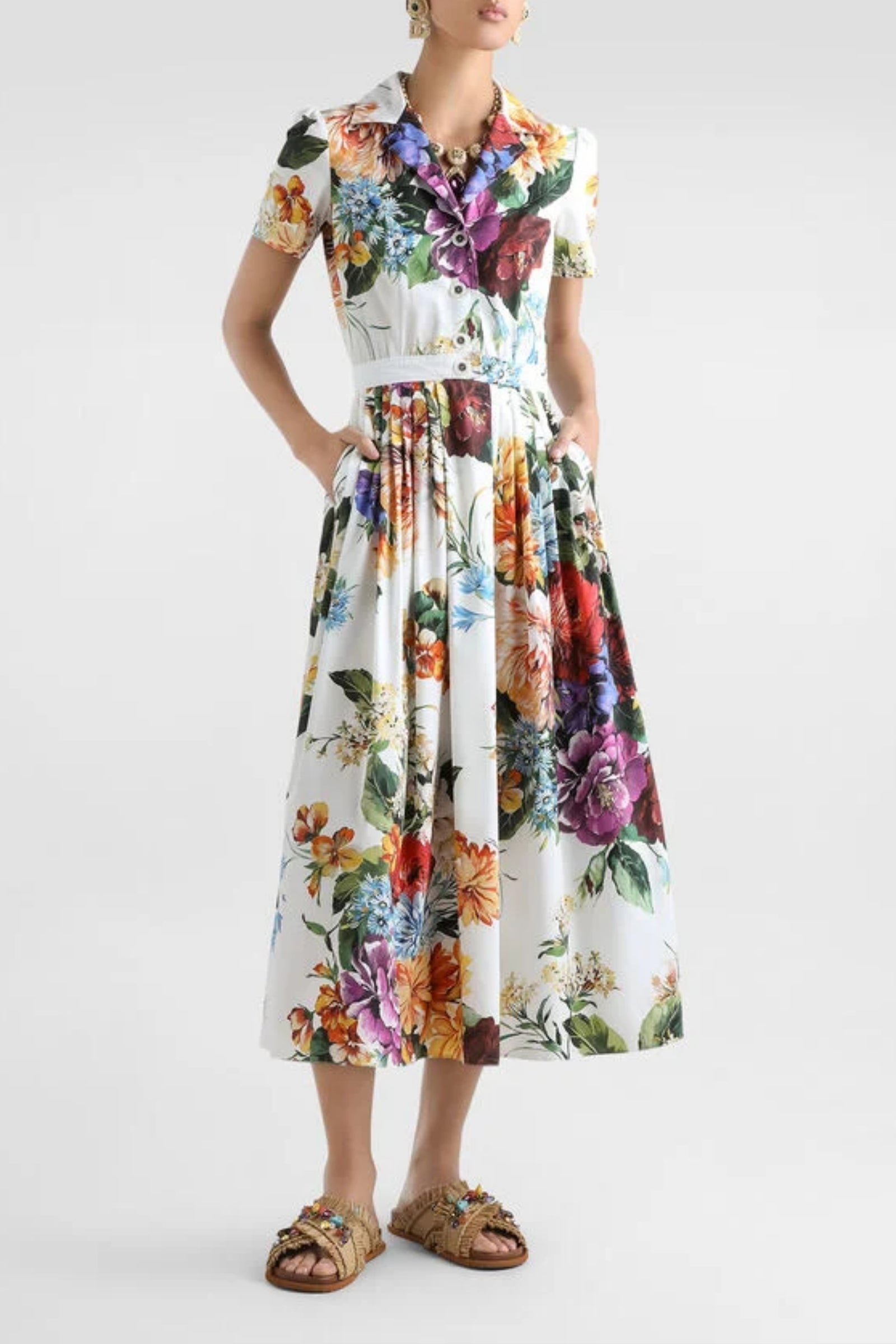 Dolce & Gabbana Floral Collared Midi Dress