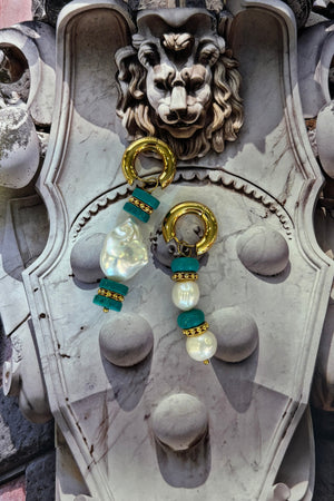 - Mismatched turquoise, baroque pearl & small pearl earrings